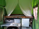 Voorzien van kookplaat, compressorkoelkast (op 220v voor de camping) en watertank.