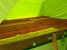 In de achterste tent is een heel groot bed van 180 x 200 cm waar, net als in de daktent, al een matras aanwezig is.