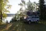 De auto is voorzien van een roofrack twee daktenten . We geven een kampeeruitrusting mee bestaande uit stoelen, een tafel, een pannenset, borden en bestek. Tevens is de defender voorzien van een uitstekende compressorkoelkast. De auto is tevens voorzien van een grote LPG tank zodat u altijd genoeg gas heeft om zelf te koken op het meegeleverde gasstel.