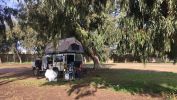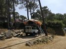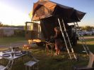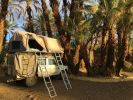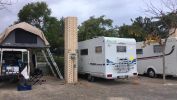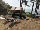 ook heeft hij een grote luifel van 250 x 200 cm om beschut buiten te kunnen zitten. Hier kunt u eventueel nog een tent bij huren die er onder geritst kan worden voor meer leefruimte of extra slaapplaatsen.